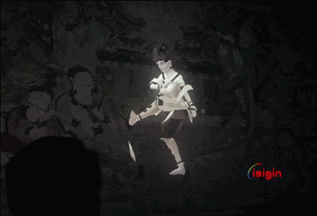 用CG技术复原石窟壁画中的人物形象,百分百提取真人舞蹈动作,借助全息投影,伎乐天随着音乐的旋律,翩然起舞!